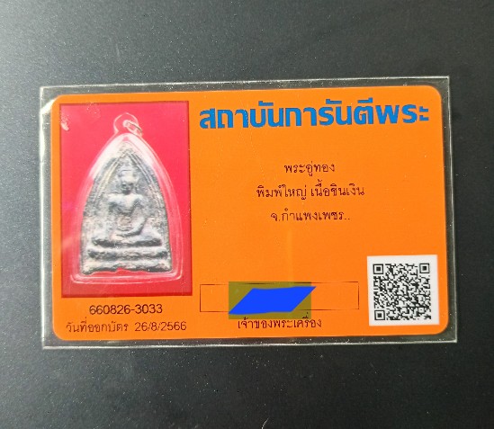 วัดใจ พระอู่ทอง พิมพ์ใหญ่ เนื้อชินเงิน จ.กำแพงเพชร พร้อมบัตรรับรองจากจีพระ |