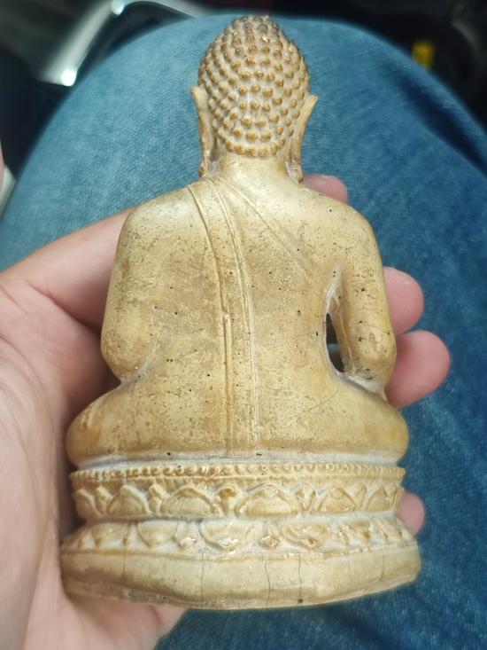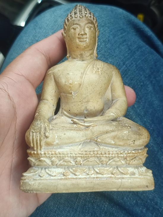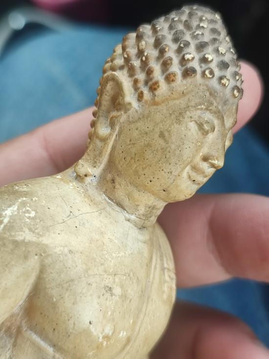 //เคาะแดง// พระบูชา3นิ้วเนื้อปูนผสมผงพุทธคุณเคลือบแลคเกอร์เก่า มีชำรุดตรงคอซ่อมเก่า ไม่ทราบที่ครับ |