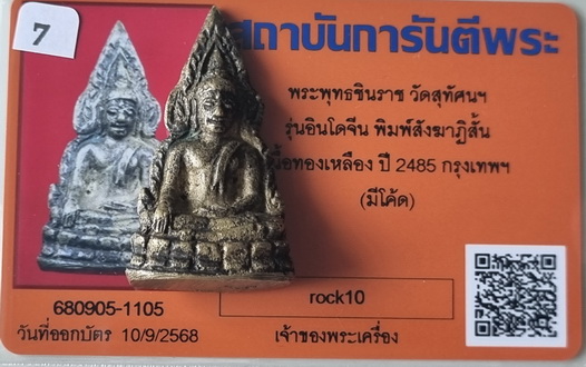 พระพุทธชินราช รุ่นอินโดจีน วัดสุทัศน์ฯ กรุงเทพฯ ปี2485 พิมพ์สังฆาฎิสั้น เนื้อทองเหลือง มีโค๊ด สภาพสวยหายากแล้วครับ มาพร้อมบัตรรับรองจีพระ รับประกันตามกฎจีพระทุกประการ