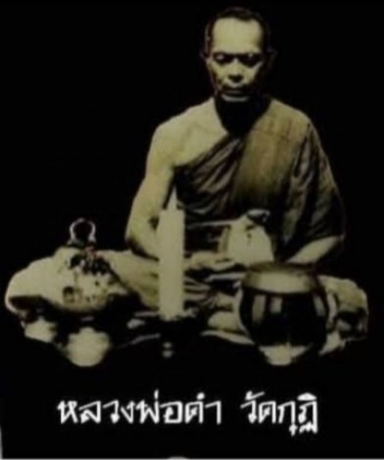 พระปิดตาเนื้อตะกั่ว หลวงพ่อดำ วัดกุฎี ปี 2443 (ยุคต้น ตะกั่วดำเก่าถึงยุค)(ฝังสายสิญจน์มัดตราสังข์)