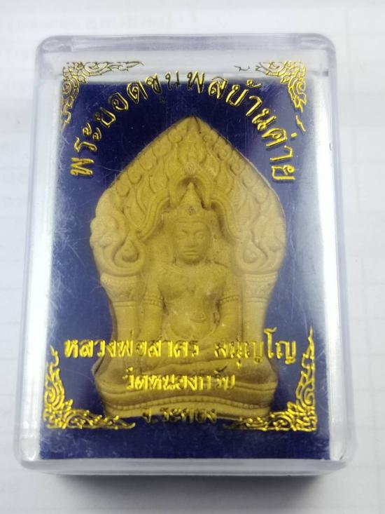 พระยอดขุนพลบ้านค่าย เนื้อว่านดอกทอง หลังฝังพลอยเสก หมายเลข 4099 หลวงพ่อสาคร วัดหนองกรับปี 2552 พร้อมกล่องเดิม |