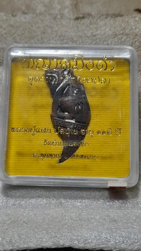 วัดใจเคาะเดียว........100......พญาสมิงดำ อุดว่านเครือร้อยปลาตัวผู้ตัวเมีย หลวงปู่แสน วัดหนองจิก เนื้อชนวนโลหะธาตุ สุดยอดเข้มขลัง หลวงปู่แสน วัดหนองจิก ปี 62 รุ่นนี้ทันหลวงปู่แสนปลุกเสก สวยคากล่องเดิม |
