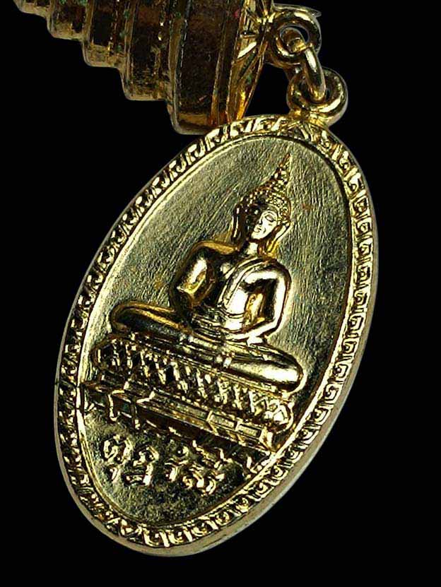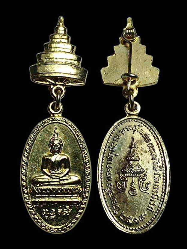 เหรียญเข็มกลัด สัปตฎลเศวตฉัตร พระพุทธรังษี โดยเสด็จพระราชกุศล ณ. พระอุโบสถ คณะรังษี วัดบวรฯ กรุงเทพฯ กะไหล่ทอง ปี พ.ศ.2519 พิธีใหญ่ พิธีเดียวกันกับพิธีสมเด็จพระอุณาโลมทรงจิตลดา |