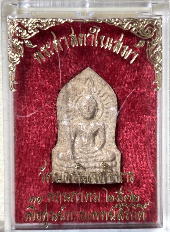 เปิดวัดใจ พระศาสดาใบเสมา(ภปร.) วัดบวรนิเวศวิหาร กทม. พ.ศ.๒๕๓๒ (เนื้อผงฯโรยเส้นพระเกศาสมเด็จพระญาณสังวร สมเด็จพระสังฆราชฯ.) พร้อมกล่องเดิม |
