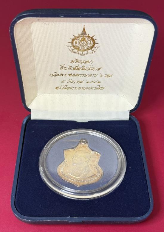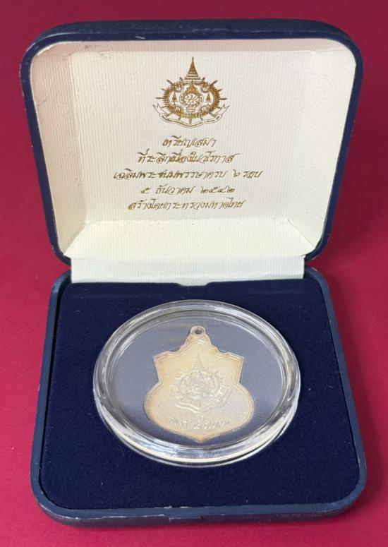 เหรียญเสมา ที่ระลึกเนื่องในวโรกาส เฉลิมพระชนมพรรษาครบ 6 รอบ 5 ธันวาคม 2542 สร้างโดยกระทรวงมหาดไทย เหรียญเนื้อเงินพ่นทราย