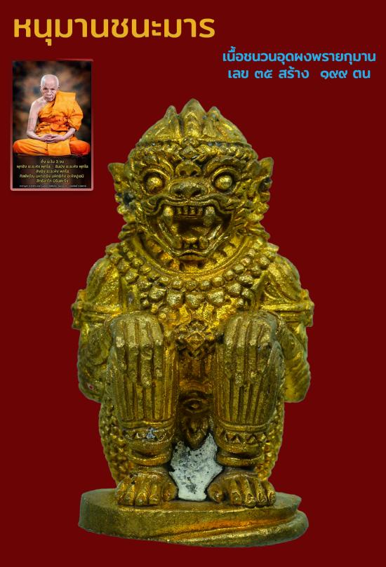 หนุมานชนะมาร หลวงปู่เขียว วัดห้วยเงาะปัตตานี เนื้อชนวนอุดผงพรายกุมาร เลข ๓๕ สร้าง ๑๐๐๐ ตน ปี ๒๕๕๘ |