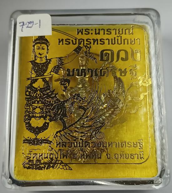 พระนารายณ์ทรงครุฑราชปักษา ดวงมหาเศรษฐี เนื้อทองชนวนสะแกรัง "แยกชุดของขวัญ" เบอร์ 729 พร้อมกล่องครับ (1)