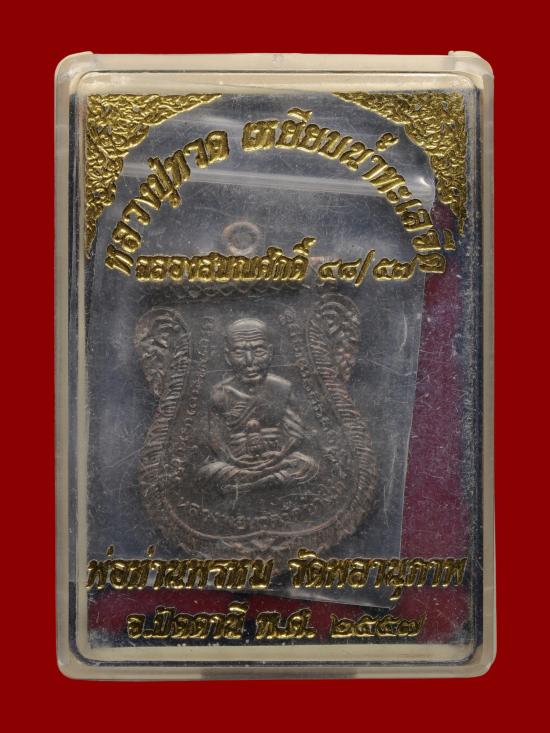 "เคาะแรกแดง" เหรียญเสมาหน้าเลื่อนหลวงพ่อทวดหลังพ่อท่านพรหม วัดพลานุภาพ ปัตตานี ปี2557 รุ่นฉลองสมณศักดิ์ 48/57 เนื้อสัตตโลหะ หมายเลข 1279