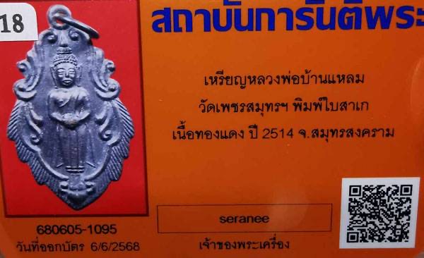 .. เหรียญหลวงพ่อบ้านแหลม พิมพ์ใบสาเก วัดเพชรสมุทรฯ เนื้อทองแดง ปี 2514 จังหวัดสมุทรสงคราม สวยเดิม พร้อมบัตรรับรอง เคาะแรก |