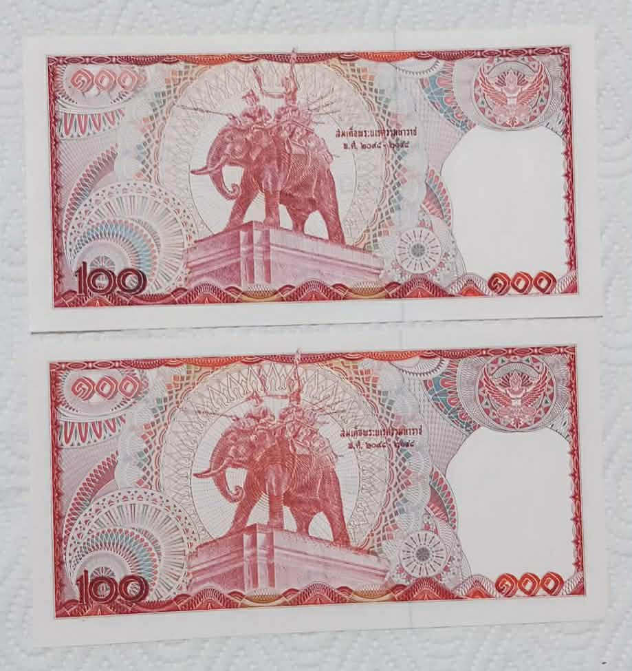 ธนบัตร 100 บาท รัชกาลที่ 9 แบบ 12 ช้างแดง เลข 6 หลัก จำนวน 2 ใบ สวยไม่ผ่านการใช้งาน ไม่พับ ไม่ยับ |