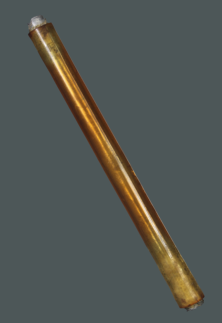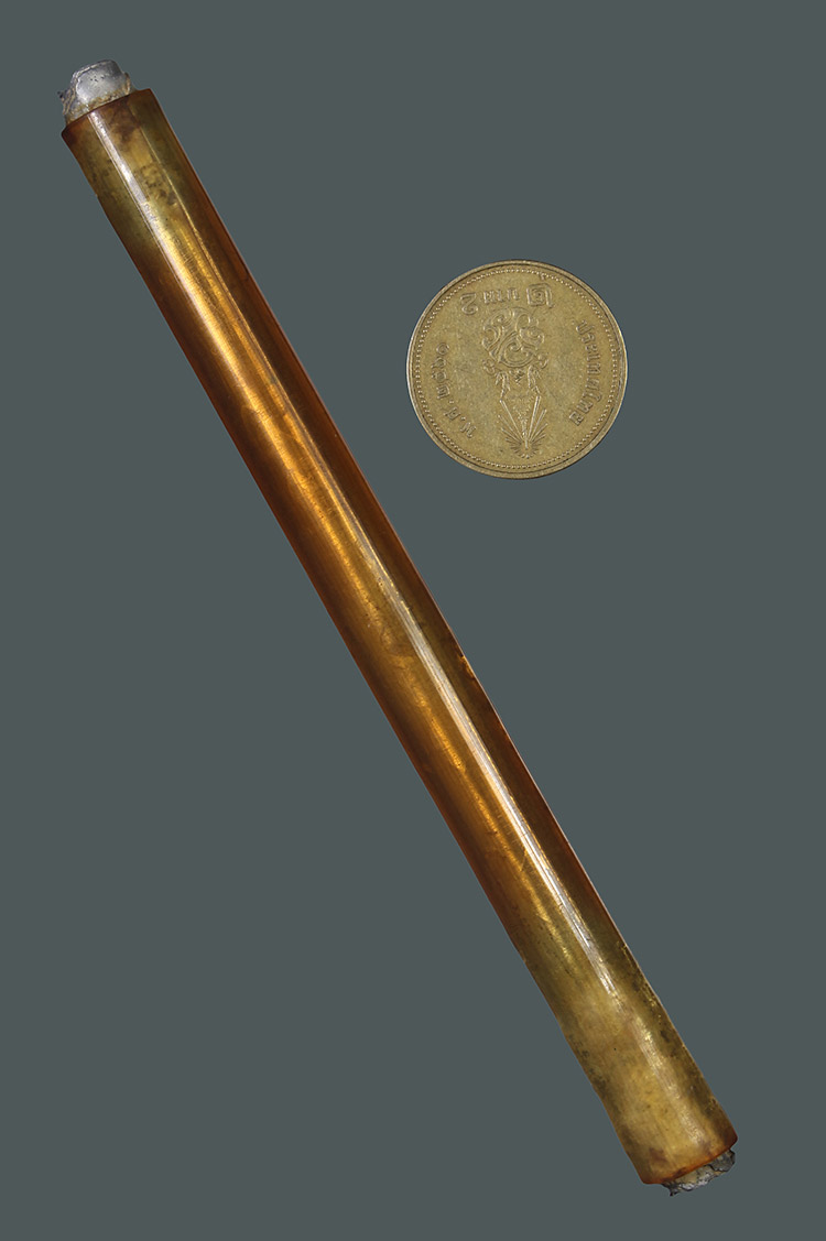 วัดใจ**เครื่องราง ตะกรุดเนื้ออลูมิเนียมเก่า ยาว 4.7นิ้ว ไม่ทราบที่.....เดิมๆครับ |