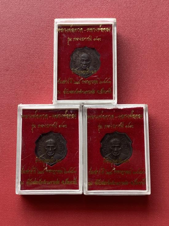 เคาะเดียวแดง หลวงปู่ทวด อาจารย์ทองรุ่นทองบารมี93 เนื้อทองแดงนอกรมดำ 3องค์ |