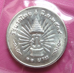 เหรียญกษาปณ์ที่ระลึก รัชกาลที่ 9 ทรงครองสิริราชยสมบัติครบ 25 ปี.( รัชดาภิเษก )ชนิดราคา 10 บาท.เนี้อเงิน ปี 2514 สภาพสวยเดิมๆ.*7