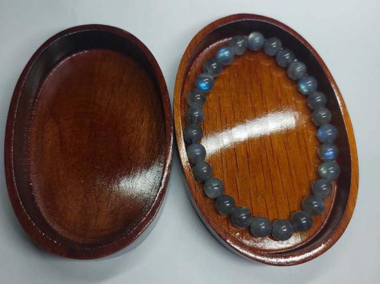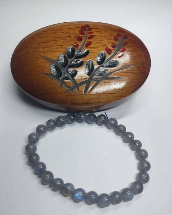 สร้อยข้อมือหินลาบราดอไลท์ (Labradorite) 8 มิล พร้อมกล่องไม้ เป็นหินมงคลที่เชื่อกันว่าเป็นหินแห่งการปกป้องและช่วยเสริมสร้างความคิดสร้างสรรค์
