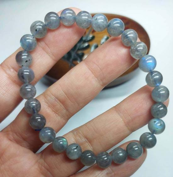 สร้อยข้อมือหินลาบราดอไลท์ รุ้งชัด(Labradorite) 8 มิล พร้อมกล่องไม้ เป็นหินมงคลที่เชื่อกันว่าเป็นหินแห่งการปกป้องและช่วยเสริมสร้างความคิดสร้างสรรค์