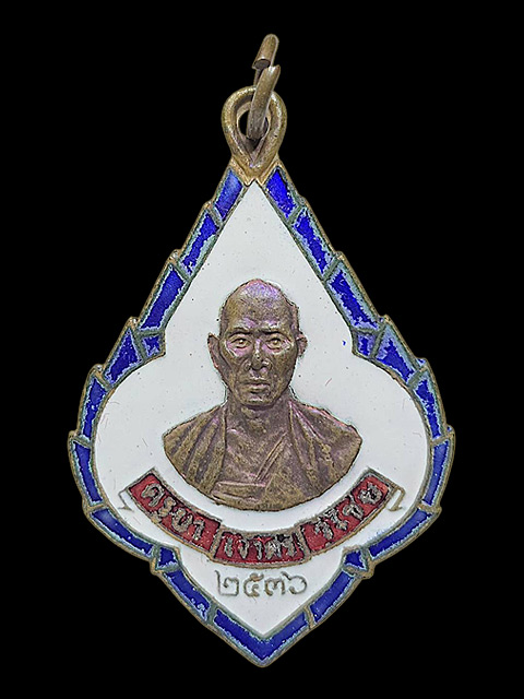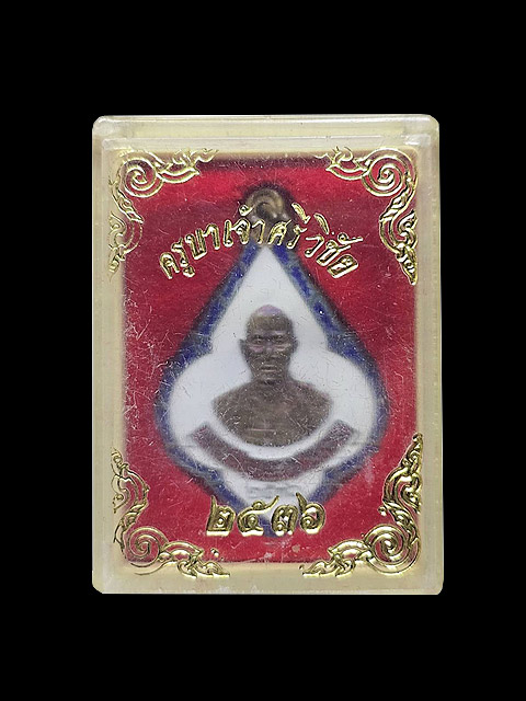 ***เหรียญพุ่มข้าวบิณฑ์ เนื้อทองแดงลงยา ครูบาเจ้าศรีวิไชย ปี 2536*** |