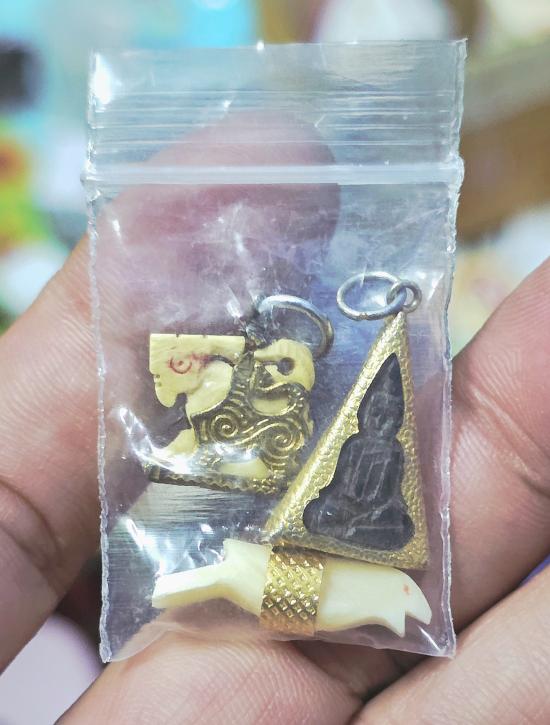 ชุดนี้เป็นชุดมีประสบการณ์ทาง ด้านเสน่ห์เมตามหานิยม ประกอบด้วยนกสาริกางาแกะ หลวงปู่ศิลา สิงห์สาริกางาแกะ(ไม่ทราบพระเกจิ)อันนี้ผมสันนิษฐานระหว่างหลวงพ่อกวยกับหลวงพ่อหอมส่วนตัวมองเป็น2องค์นี้ส่วนท่านประมูลอ่านมองเป็นเกจิอื่นก็ได้ พระนางพญาเนื้อไม้งิ้วดำแกะ(ไม่ระบุที่)ชอบเคาะได้เลย