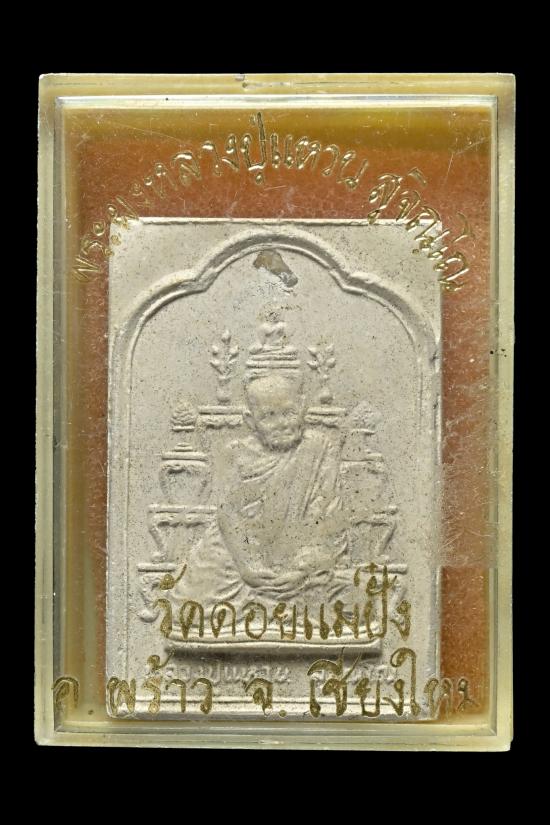 พระผงพิมพ์โต๊ะหมู่บูชา หลวงปู่แหวน สุจิณโณ วัดดอยแม่ปั๋ง เนื้อผง ฝังพระธาตุ ออกปี 2520 กล่องเดิม |