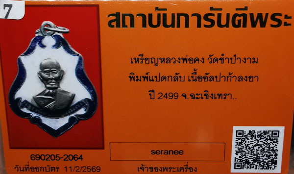 เหรียญหลวงพ่อคง วัดซำป่าง่าม พิมพ์แปดกลับ เนื้ออัลปาก้าลงยา(มีรอยจาร) ห่วงเดิม ปี2499 จ.ฉะเชิงเทรา + บัตรG-pra สภาพเดิมค่ะ สภาพตามรูปทุกประการค่ะ
