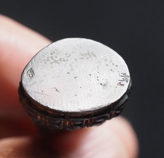3. นวโลหะพิเศษผิวปัดก้นถ้วย จำนวน 74 องค์ ตอกเลข 27 - 100 ประทับช้าง