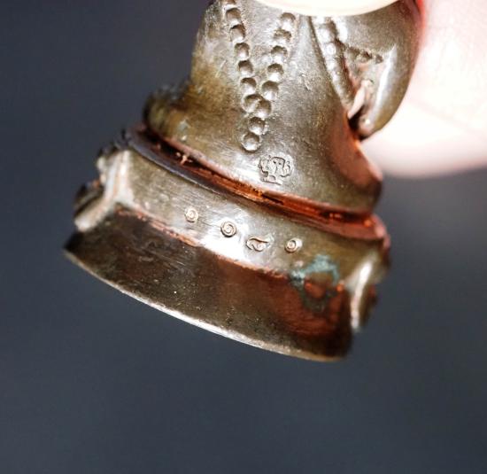 พระกริ่งใหญ่ วัดช้าง เนื้อนวโลหะเต็มสูตรชัดเม็ดกริ่งในองค์ ตอก 3 โค๊ด เลข ๑๑๘๑ (ขนาด 4 x 2.2 ซม.)ปีพ.ศ. 2545 จัดสร้างโดย วัดช้าง จ.นครนายก สภ่าพสวย เคาะแรก