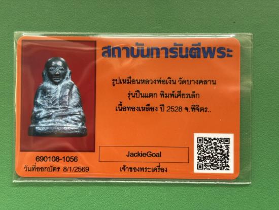 พระรูปหล่อ หลวงพ่อเงิน วัดบางคลาน รุ่นปืนแตก พิมพ์เศียรเล็ก เนื้อทองเหลือง ปี พ.ศ.2528 พร้อมบัตรรับรองพระแท้