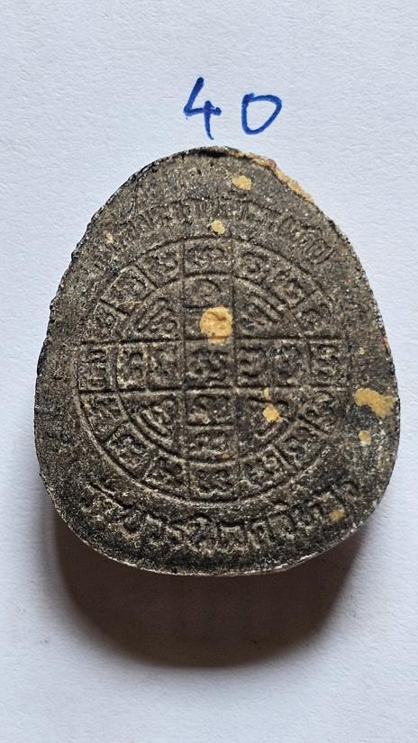 พระปิดตายันต์ดวงเล็ก สมเด็จพระญาณสังวร ปี2523(ข้อมูลจาก นสพ.เดลินิวส์) เนื้อ2สี หน้าเกสรหลังใบลานครับ40