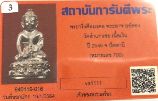 พระกริ่งศีลมงคล อาจารย์ทอง เนื้อเงินเกศทองคำ วัดสำเภาเชย จ.ปัตตานี ปี 2546 หมายเลข 700 สร้างแค่ 999 องค์