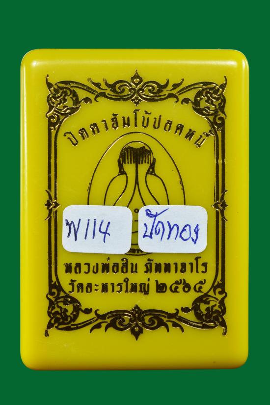 วัดใจ พระปิดตาจัมโบ้ ปลดหนี้ รุ่นแรก หลวงพ่อสิน วัดละหารใหญ่ จ.ระยอง ปี 2565 เนื้อผงใบลานปัดทอง ตอกโค้ดพิเศษ หมายเลข ๑๑๔ กล่องเดิม |