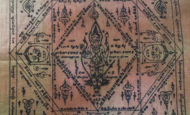 ผ้ายันต์ ไม่ทราบที่ ลวดลายสวย เนื้อผ้าดูเก่า ครับ (พระบ้าน ครับ) |
