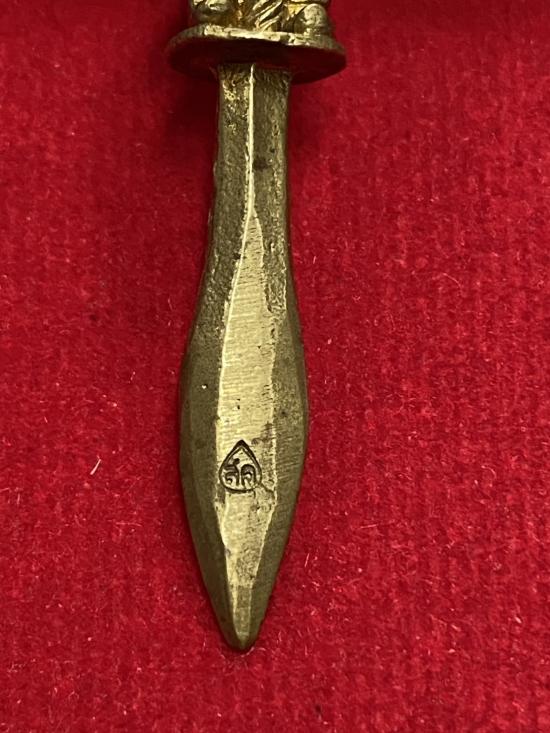 พระขรรค์ท้าวเวสสุวรรณ รุ่น พระไตรปิฎก จัดสร้างปี 2544 หลวงพ่อสาคร วัดหนองกรับ เนื้อทองเหลือง ในเล่มมี 2 หน้า หน้าเทพและหน้ายักษ์ สวยเดิม หายาก น่าสะสม |