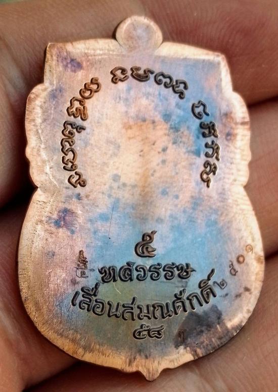 เหรียญเลื่อนสมณศักดิ์ หลวงปู่ทวดปี 58 เนื้อชนวนไม่ตัดปีกหลังกึ่งเรียบ (ชุดเนื้อเงินหน้ากากทองคำ) ตอกนัมเบอร์ 2501 พร้อมกล่องเดิม สภาพสวย