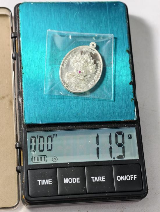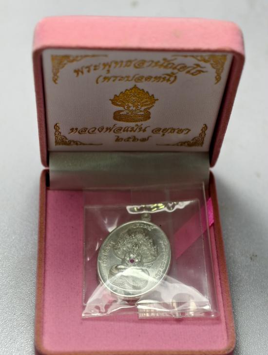 50.-/// หลวงพ่อแม้น วัดหน้าต่างนอก..เหรียญปลดหนี้ เนื้อเงินฝังพลอย หมายเลข 442 พร้อมกล่อง