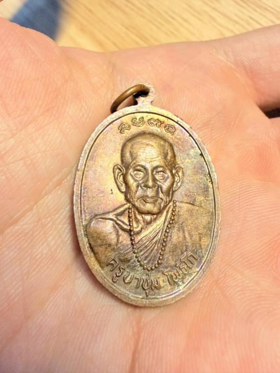เหรียญ ครูบาศรีวิชัย หลัง ครูบาชุ่ม โพธิโก พระอริยเจ้า แห่งหริภุญชัย วัดชัยมงคล (วังมุย) ตำบลประตูป่า อำเภอเมือง จังหวัดลำพูน เนื้อทองแดง รุ้งสวยๆ