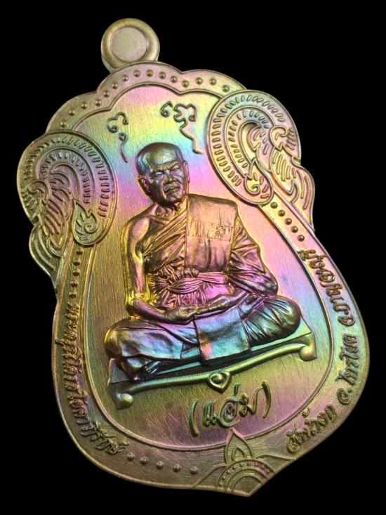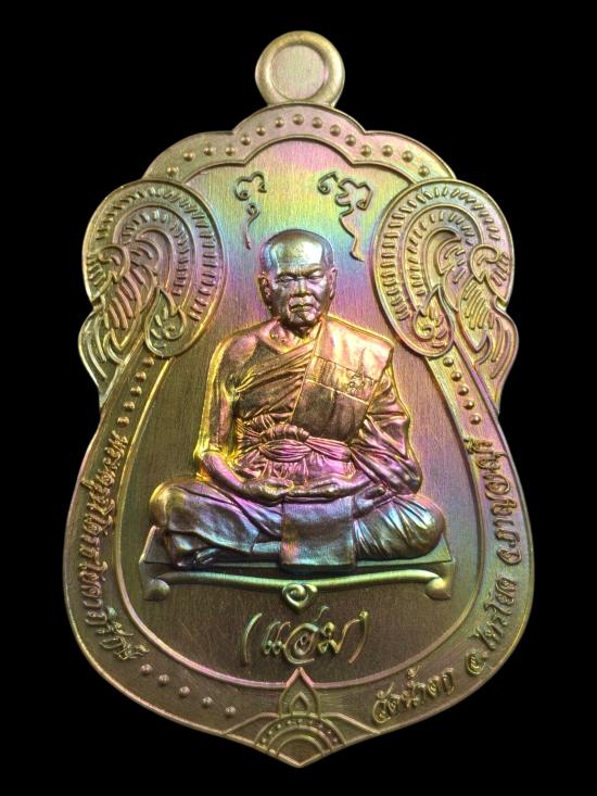 เริ่ม 79.- *** หลวงพ่อแอ่ม วัดน้ำตก จ.กาญจนบุรี เหรียญเสมารุ่นแรก เนื้อทองเหลืองรุ้ง หลังยันต์ |