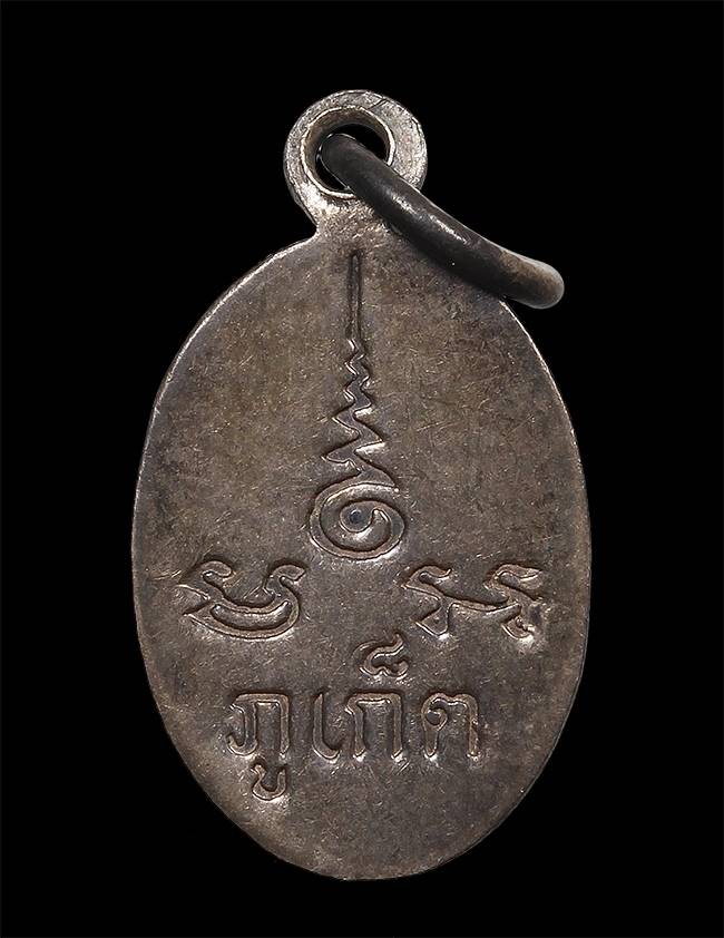 เหรียญเม็ดแตง หลวงพ่อแช่ม วัดฉลอง จ.ภูเก็ต ปี 12 เนื้อเงินลงถม ห่วงเชื่อม |