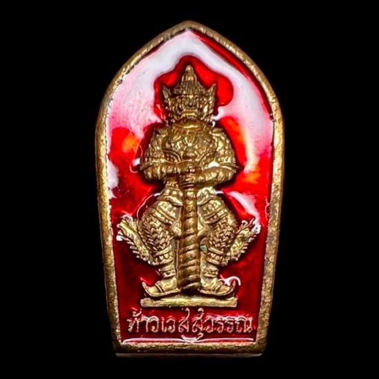 2องค์!! เหรียญปรกใบมะขาม เนื้อสัตตะ (ลงยาแดงใหม่) ท้าวเวสสุวรรณรุ่น4 ลาภผลพูนทวี มีทรัพย์เพิ่ม วัดจุฬามณี ปี 2563 |