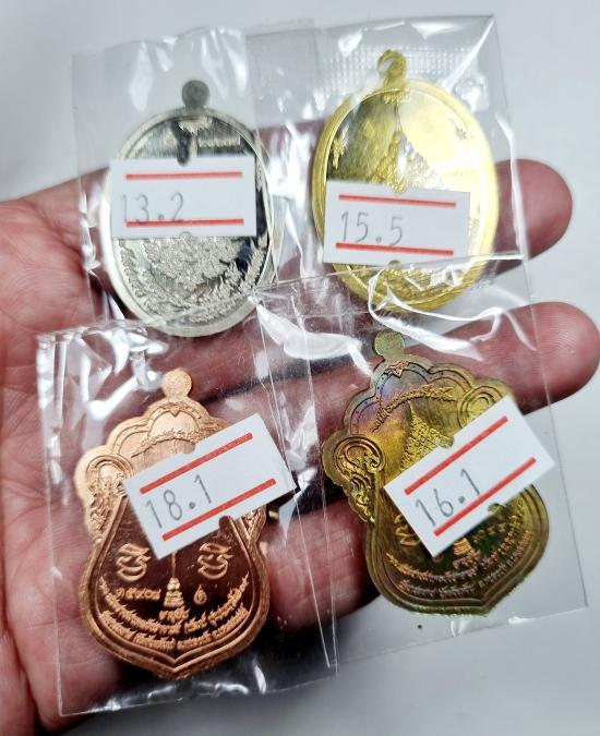 เลื่อนสมณศักดิ์ หลวงพ่อพัฒน์ คละเนื้อ 4เหรียญ พร้อมกล่อง