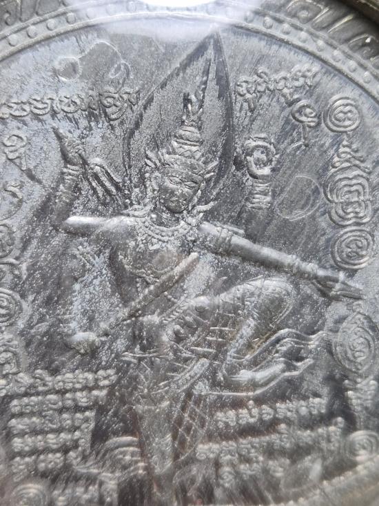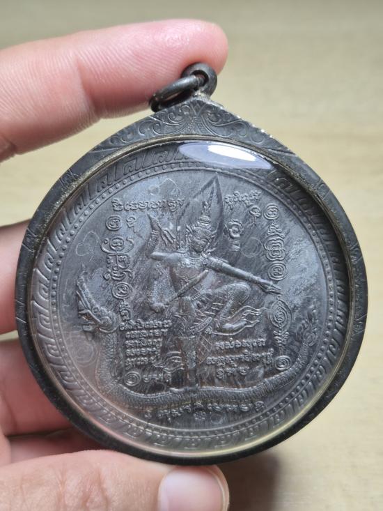 เหรียญนารายณ์อวตารประทานพร หลวงพ่อชำนาญ วัดบางกุฎีทอง จ.ปทุมธานี เนื้อตะกั่ว ปี 2545 พร้อมเลี่ยมเงิน มีจารหน้า-หลัง
