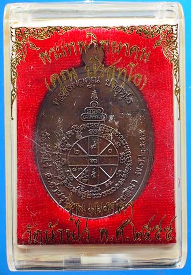 เหรียญหลวงพ่อคูณ วัดบ้านไร่ รุ่นเมตตา ปี พ.ศ. 2555 รูปไข่ครึ่งองค์ พิมพ์ห่มเฉียง เนื้อนวะโลหะ หมายเลข 3639 พร้อมกล่องเดิม