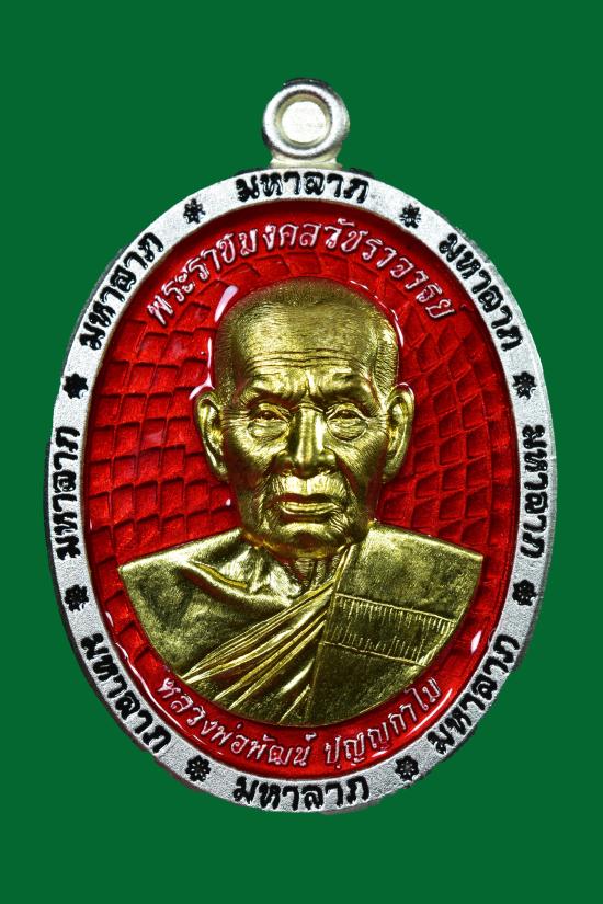 วัดใจ เหรียญหลวงพ่อพัฒน์ วัดห้วยด้วน รุ่นมหาลาภ เนื้อกะไหล่เงิน ลงยาแดง หน้ากากทองทิพย์ เลขหามสวยๆ เบอร์ ๒๙๒ มีกล่องเดิมๆ