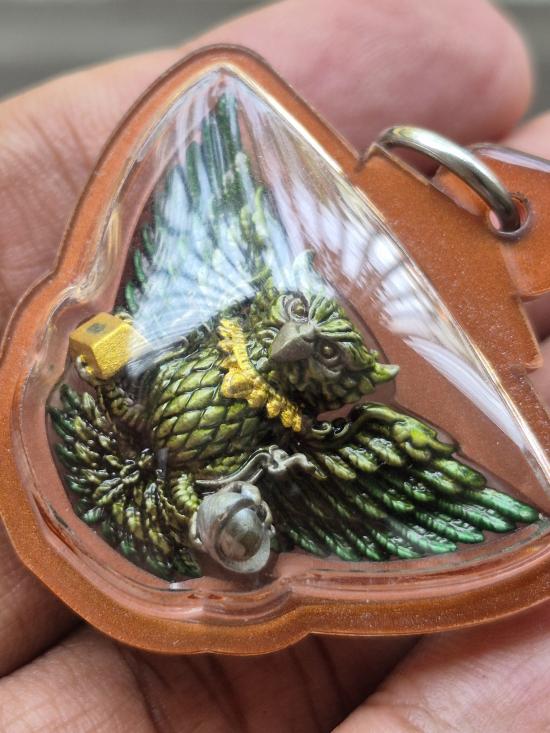 พญา นกถึดทือ ครูบาศักดิ์ จ.ลำปาง เนื้ออัลปาก้าซาตินลงยาเขียว พร้อมเลี่ยมกันน้ำ พุทธคุณ โชคลาภวาสนา นักเสี่ยงโชคดีนักแล
