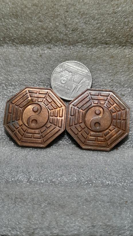 วัดใจเคาะเดียว......100.......เหรียญแปดเหลี่ยม หลังยันต์โป๊ยข่วย พ่อเพชร หลวงพ่อเพ็ชร วัดท่าถนน จ.อุตรดิตถ์ ปี47 หลวงปู่ทองดำ วัดท่าทอง ปลุกเสก ตอกโค๊ต สวย รวม 2 เหรียญ --- 4