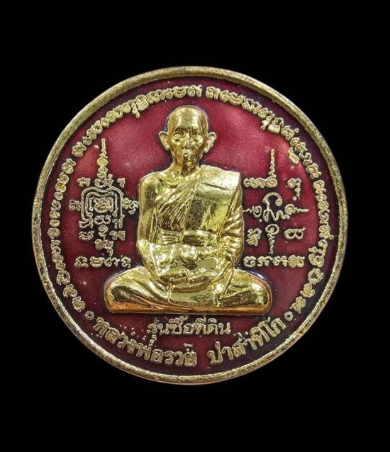 หลวงพ่อรวย วัดตะโก จ.อยุธยา เหรียญซื้อที่ดิน ปี 2541 เนื้อกะไหล่ลงยาสีแดงหายากๆ