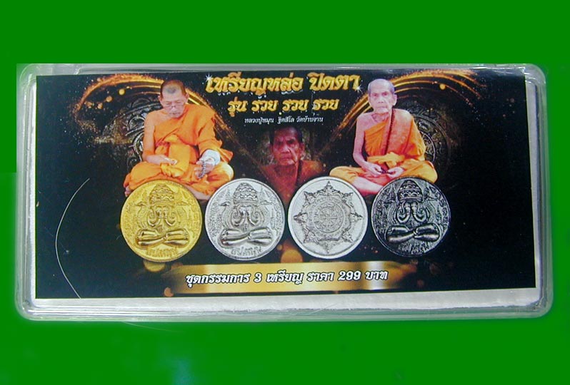 เหรียญหล่อปิดตาพังพกาฬ รุ่นรวยรวยรวยชุด กก. หลวงปู่หมุน หลวงปู่ศิลาปลุกเสก.......เคาะเดียวแดง |