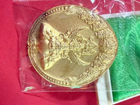 ตามรอยท่านนายกฯ เหรียญนารายณ์ทรงครุฑชุบทอง ขนาด 4 ซม. เจ้าคุณธงชัย วัดไตรมิตรวิทยาราม
