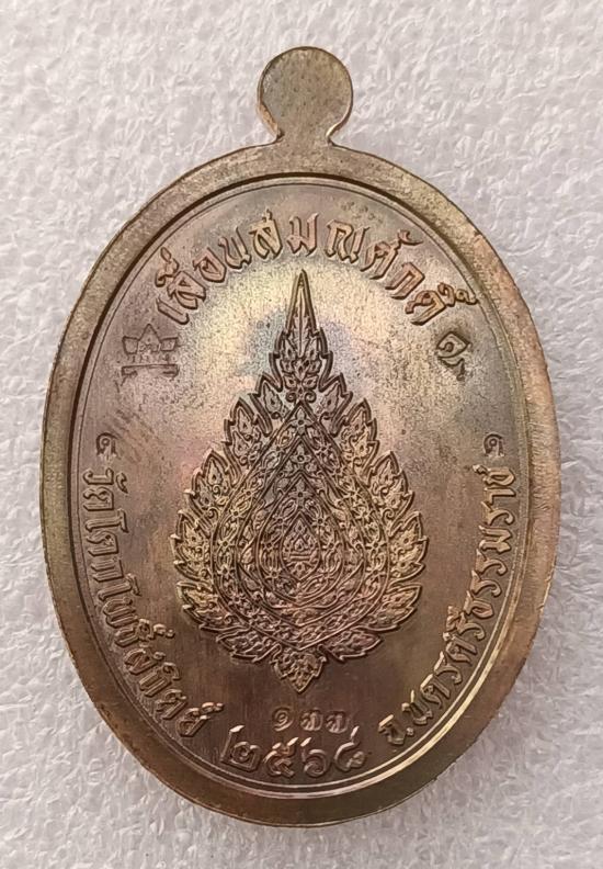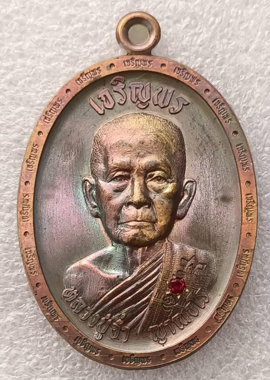 ลป.อ่ำ วัดโคกโพธิ์สถิตย์ นครศรีฯ เหรียญทองแดงผิวรุ้งฝังพลอยแดง รุ่นเจริญพรฯปี๖๘