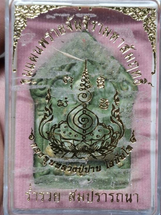 พระขุนแผนพรายจันจิรามหาสัมฤทธิ์ พิมพ์ใหญ่ สีเขียวเหนี่ยวทรัพย์ กองทุนหลวงปู่ปานโสนันโท ฝังเหล็กไหล กล่องเดิม |