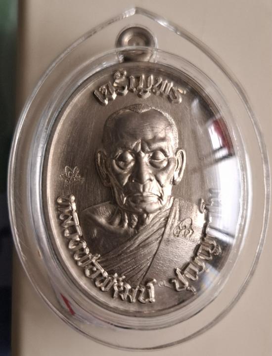 เหรียญเจริญบน 65 หลวงพ่อพัฒน์ ปุญฺญกาโม เนื้ออัลปาก้า เลข ๒๑๓๘ เลี่ยมพร้อมใช้สวยๆ พร้อมกล่องเดิม
