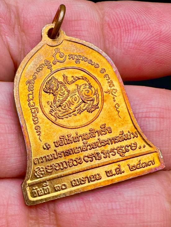เหรียญระฆัง บำบัดทุกข์ บำรุงสุข หลังสิงห์ หลวงพ่อเกษม เนื้อทองแดงผิวไฟ ปี 2537 |